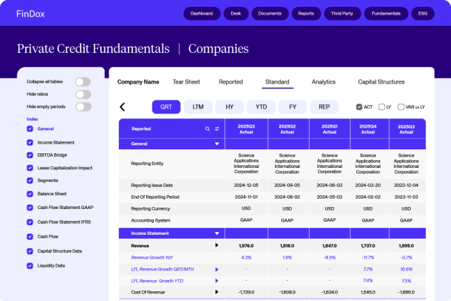Stop wasting time with messy data. We deliver in-depth financials, KPIs, and tear sheets on all your requested names. Quickly analyze reported and standardized metrics across direct lending and private equity, moving you straight from data access to informed investments.