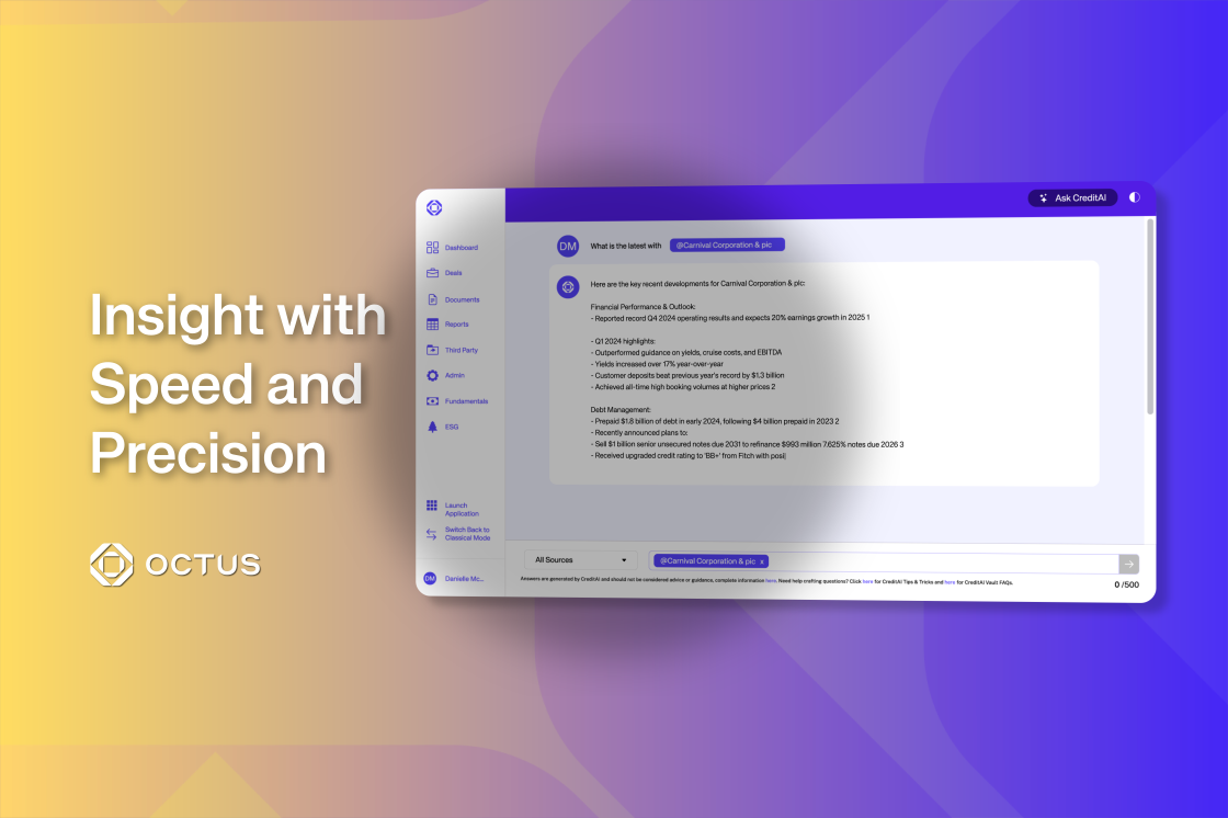 Accelerate credit insights with CreditAI Vault by Octus™. Powered by advanced AI, search across your FinDox private credit content and Octus intel for secure, bespoke answers to your credit questions.