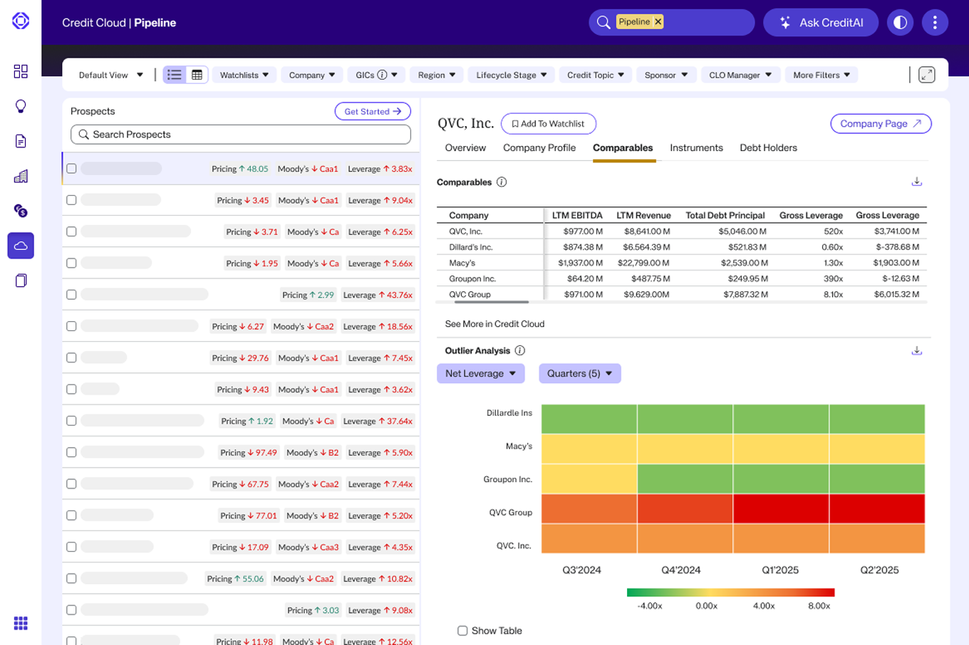 Intuitively identify and evaluate opportunities with Octus Credit Cloud – Pipeline. With more than 30 distinct data points and a customizable dashboard, you can easily screen the landscape based on financing catalysts, fundamental data, ratings and price.