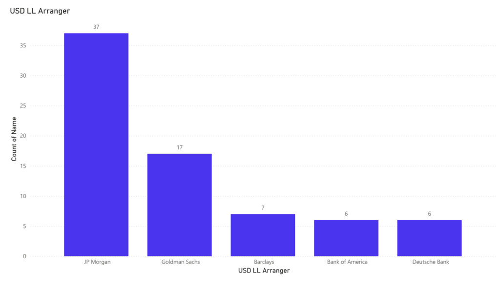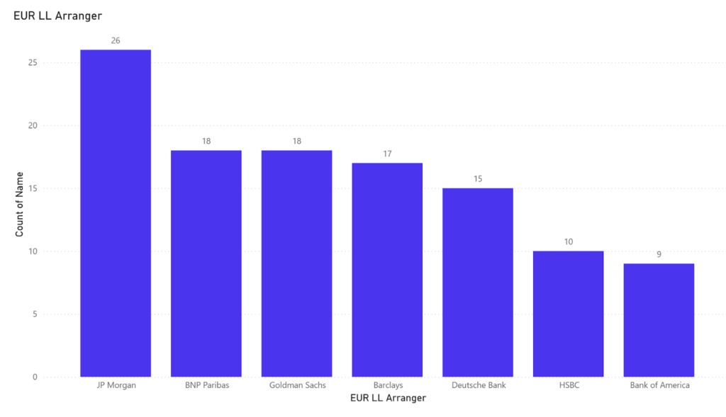 The European landscape offered a slightly more competitive yet similarly top-heavy dynamic. JPMorgan also led here with 26 arrangements, followed closely by Goldman Sachs (18) and Barclays (17). The presence of these same transatlantic institutions at the top of the European league table underscores the necessity for globally integrated banks to bridge the “Atlantic Divide,” as they were best positioned to manage the friction between U.S. liquidity and EU transparency requirements.