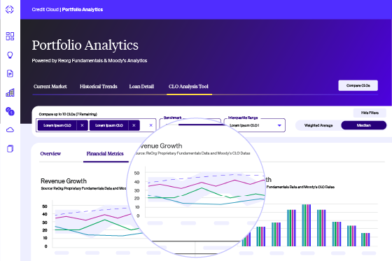 With Portfolio Analytics, gain insight into underlying collateral on an aggregated basis to allow you to compare and analyze performance and style over time of both CLOs and CLO managers.