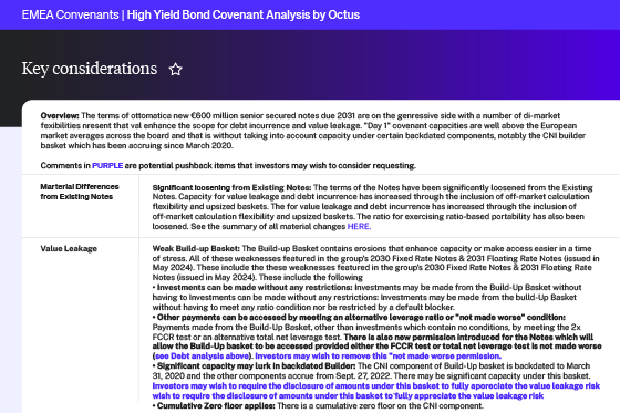 Access our expert, in-depth analysis of covenants of indentures and credit agreements for both primary and secondary opportunities.
