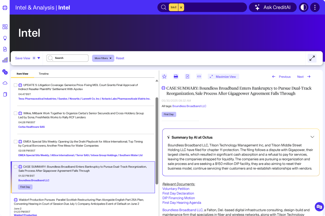 In-depth intel on stressed and distressed credits helps you act fast, gain critical insights, and spot what others miss. Supercharge your research and case preparation. Decode debt documents and surface risks. 300+ of the world’s best financial, legal and credit market experts keep you ahead.
