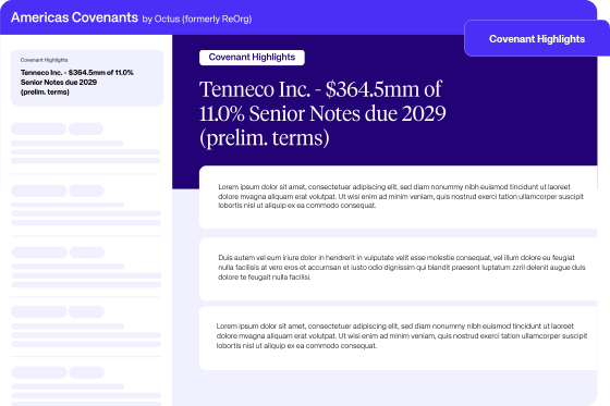 Access companies’ financials, tear sheets, capital structures and transcripts from a database of ~3,000 bond and loan issuers. Excel add-in and/or API available. Manage all your deal documents on a single platform. Gain insights through covenant analysis.