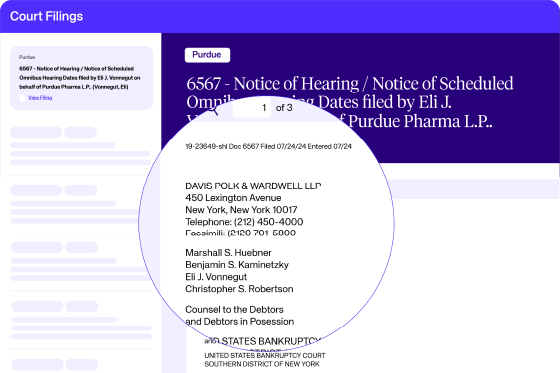 Never miss a key court filing with our best-in-class docket functionality. Access real-time reporting on critical proceedings. Read expert-written bankruptcy and litigation coverage and commentary.