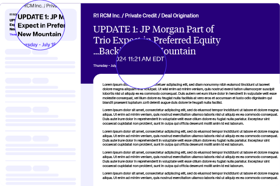 Access the full history of credits from primary to stressed/distressed and post-reorganization. Our expanded primary and performing credit coverage ensures a complete picture when assessing any opportunity.